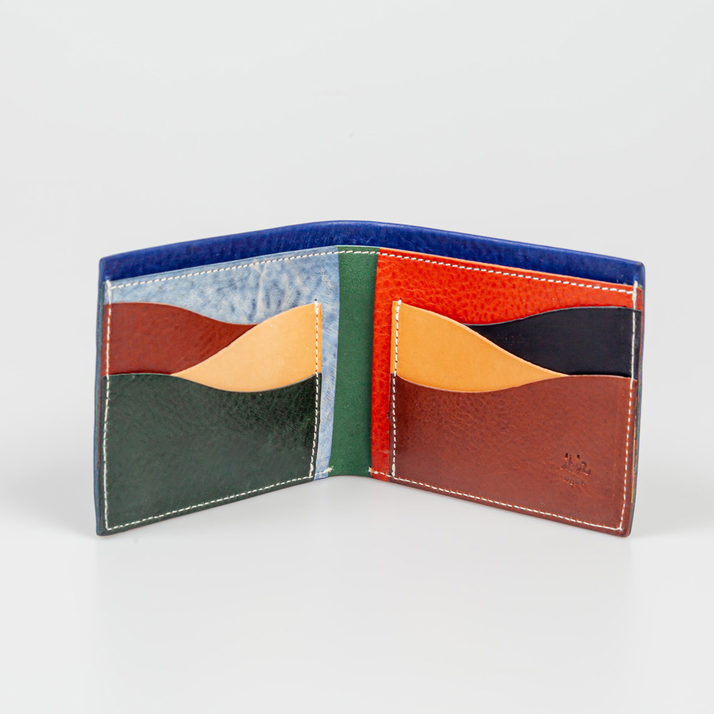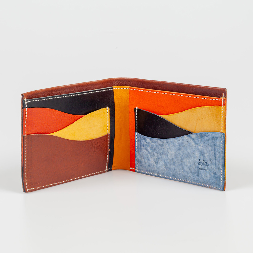 On the outside, a classic wallet, while on the inside, the wavy lines give a touch of originality to the object.